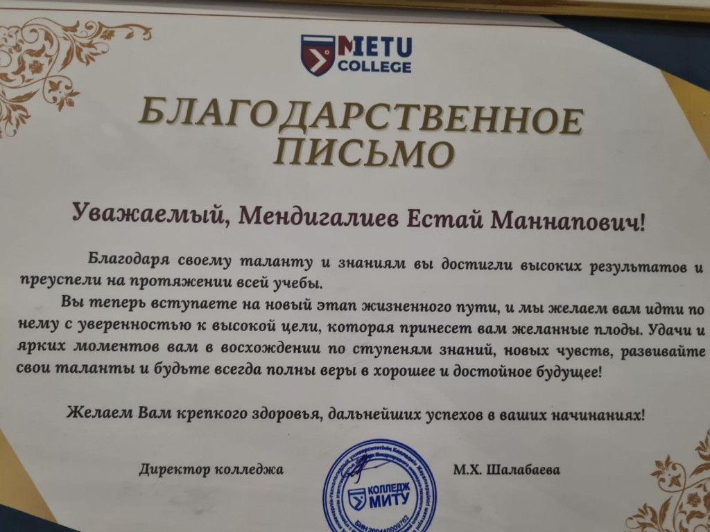 Закончил колледж по специальности METU, в этом году поступил в университет METU